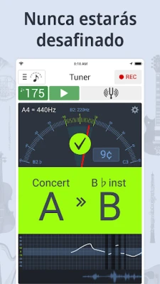 Adéntrate en la robustez de sus prestaciones, pensadas para adaptarse a cualquier necesidad musical. El afinador de alta precisión ofrece un modo cromático que mide tanto el tono como la intensidad, junto con un modo de diapasón, y permite personalizar la frecuencia A4 a tu gusto. Carga tus propias partituras directamente en la aplicación para practicar con ellas, o aprovecha la vasta biblioteca ya incluida. La compatibilidad se extiende a una multitud de instrumentos, desde pianos y guitarras hasta violines, ukeleles y la mayoría de instrumentos transpositores, ofreciendo un soporte integral para tu viaje musical.
