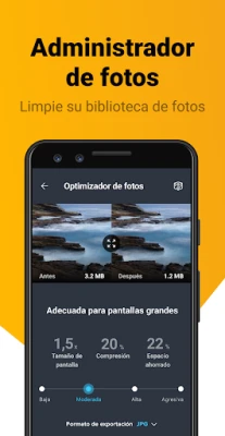 Con AVG Cleaner, la administración de sus aplicaciones nunca fue tan sencilla. Descubra cuáles son las aplicaciones que consumen más batería, datos o RAM, y decida con facilidad si desea mantenerlas o liberarlas de su dispositivo. Más allá de la limpieza básica, esta aplicación le ofrece una vista detallada del estado de su teléfono, presentándole información crucial del sistema en una pantalla intuitiva. Un gestor de archivos inteligente analizará sus imágenes, documentos y aplicaciones para brindarle un control total sobre su espacio digital.