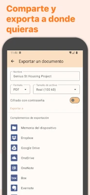 Más allá de un simple escaneo, Genius Scan le brinda control total sobre sus archivos. Cree PDFs multipágina, fusione documentos existentes o divídalos según sus necesidades, e incluso importe PDFs y fotos para gestionarlos desde una única plataforma. Organice su biblioteca digital con etiquetas personalizadas y encuentre cualquier información en un instante gracias a la potente búsqueda de metadatos y contenido. Para una integración sin fisuras, exporte sus documentos vía correo electrónico o a una amplia selección de plataformas en la nube como Box, Dropbox, Google Drive, OneDrive y muchos más, garantizando que sus archivos estén siempre accesibles donde los necesite.