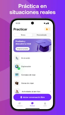 Praktika redefine el aprendizaje lingüístico, alejándose de los libros de texto para centrarse en la vivencia. Aquí, no solo estudias; vives el idioma. Escuchas, articulas y respondes de manera tan natural como lo harías en cualquier situación cotidiana. Pero la innovación no termina ahí: con la Multimodalidad integrada, la aplicación te permite ir más allá. Sube tus propias fotos, audios, vídeos o documentos para crear lecciones completamente personalizadas. ¿Necesitas practicar vocabulario sobre tu entorno? ¡Sube una imagen! ¿Buscas afinar la pronunciación de tu currículum para una entrevista? Recibe correcciones al instante. Es como tener a tu propio tutor particular, disponible las 24 horas del día, los 7 días de la semana, adaptándose a tus necesidades en tiempo real.