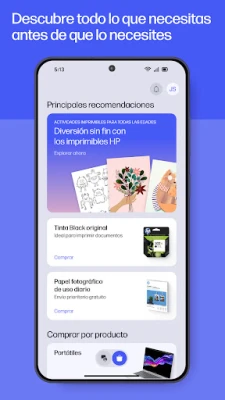 La aplicación HP no solo administra, sino que optimiza tu experiencia. Recibe sugerencias personalizadas para sacar el máximo partido a tu tecnología, ajusta configuraciones a tu medida y explora productos HP que se alinean con tus necesidades. Imprime con libertad, ya sea un formulario escolar desde la cocina o una tarjeta de cumpleaños de última hora. Escanea recibos en segundos para digitalizarlos al instante, facilitando tu vida personal y profesional con un solo toque, desde cualquier lugar.