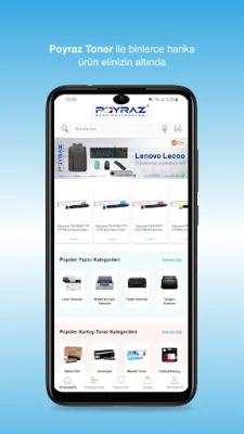Descubre Poyraz Toner, la aplicación móvil para tus necesidades de impresión. Explora tóners y cartuchos con imágenes detalladas, inicia sesión fácilmente y disfruta de compras rápidas y seguras. Rastrea tus pedidos al instante. ¡Todo a un clic!