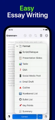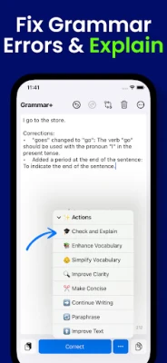 Grammar Plus es la herramienta indispensable para estudiantes que buscan la excelencia académica, profesionales que necesitan comunicar con autoridad, y creadores de contenido deseosos de cautivar a su audiencia. Incluso los hablantes no nativos encontrarán en Grammar Plus un aliado invaluable para pulir su fluidez y precisión. Con una interfaz intuitiva y correcciones en tiempo real de una exactitud excepcional, Grammar Plus te ofrece una solución integral para gramática, ortografía, estilo y tono. Comienza a experimentar el poder de una escritura sin igual y eleva tu nivel con cada frase.