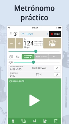 Experimenta la inmediatez en cada sesión. Con una interacción mínima, puedes activar o detener el metrónomo, encender el afinador con precisión o iniciar grabaciones de tu práctica. El metrónomo integrado no solo ofrece control de ritmo, sino que innova con modos visuales y táctiles: desde un flash de luz que marca el tempo hasta vibraciones discretas, garantizando que sientas el pulso incluso en entornos ruidosos. La función de grabación te permite capturar tu progreso y escuchar tus interpretaciones al instante, facilitando una mejora continua.